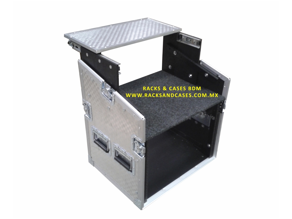 RACK 10 UR CON ESPACIO PARA MEZCLADORA, MESA PARA LAPTOP Y RUEDAS