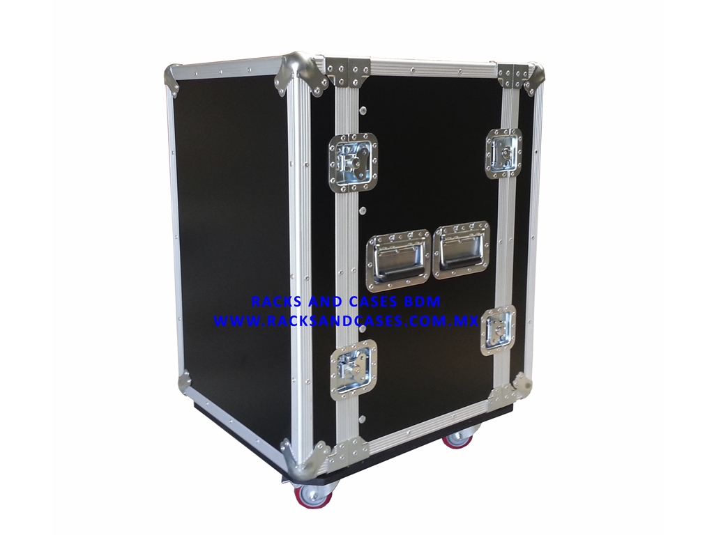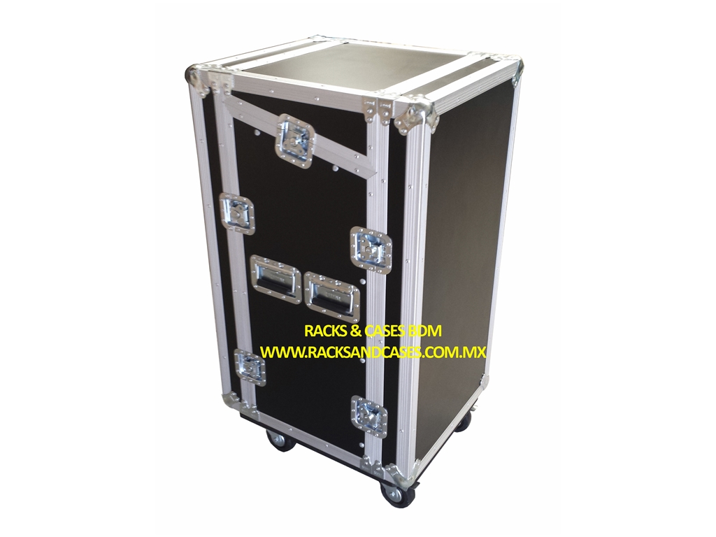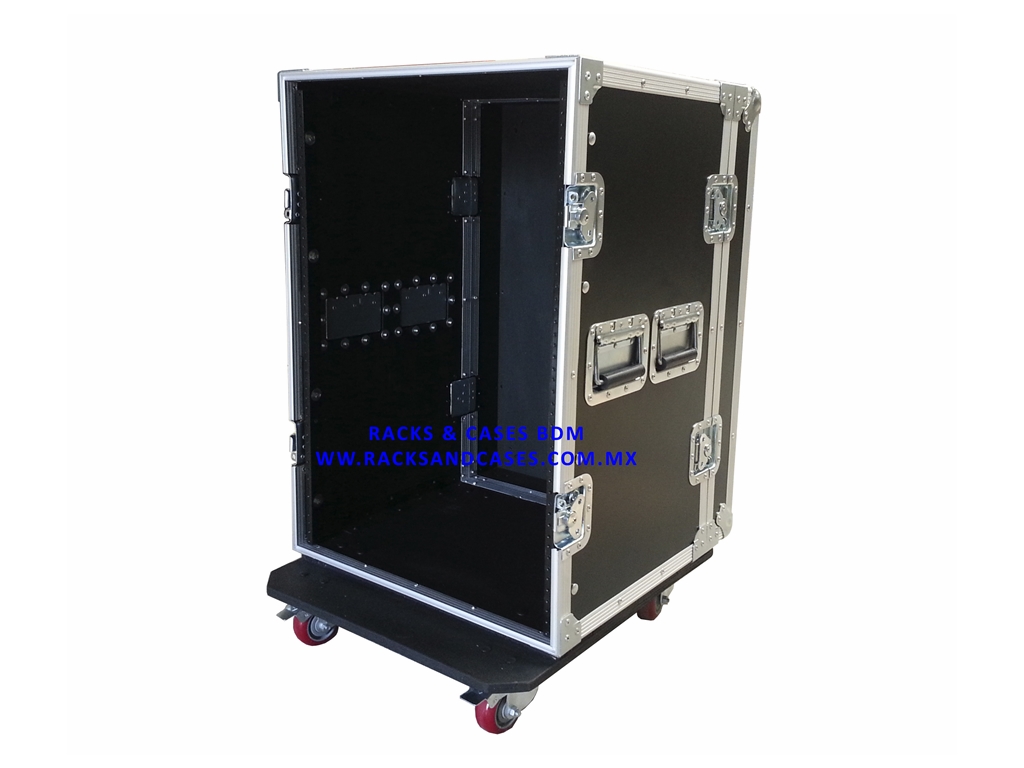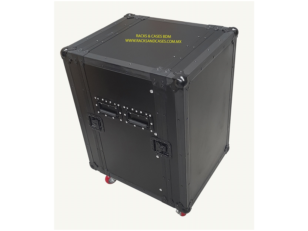 RACK 16 UR CON RUEDAS, HERRAJE Y FORMAICA NEGRA